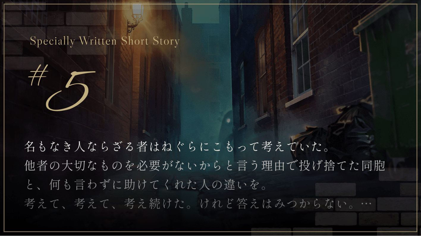 きっと受け入れてくれるだろうと考え、名もなき人ならざる者は人々が行きかう明るい路地へと踏み出した。
